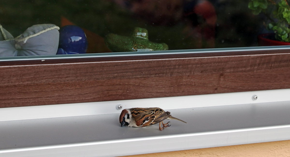 Siehst du einen Vogel ohne erkennbaren Grund vor dem Fenster liegen, solltest du ihn zunächst beobachten, ohne dich dem Tier zu nähern. Wenn der Vogel nach kurzer Zeit wieder von selber weiterfliegt, ist offensichtlich alles in Ordnung.